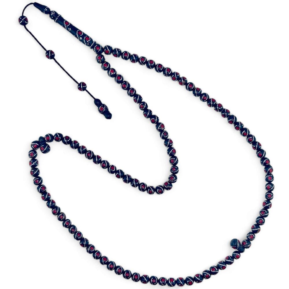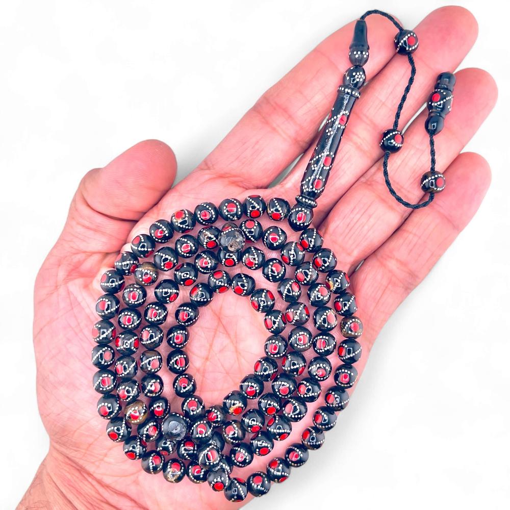 سبحة يسر اصلي المرجان الاسود الطبيعي مطعم بالفضة عيار 925 - 8 ملي