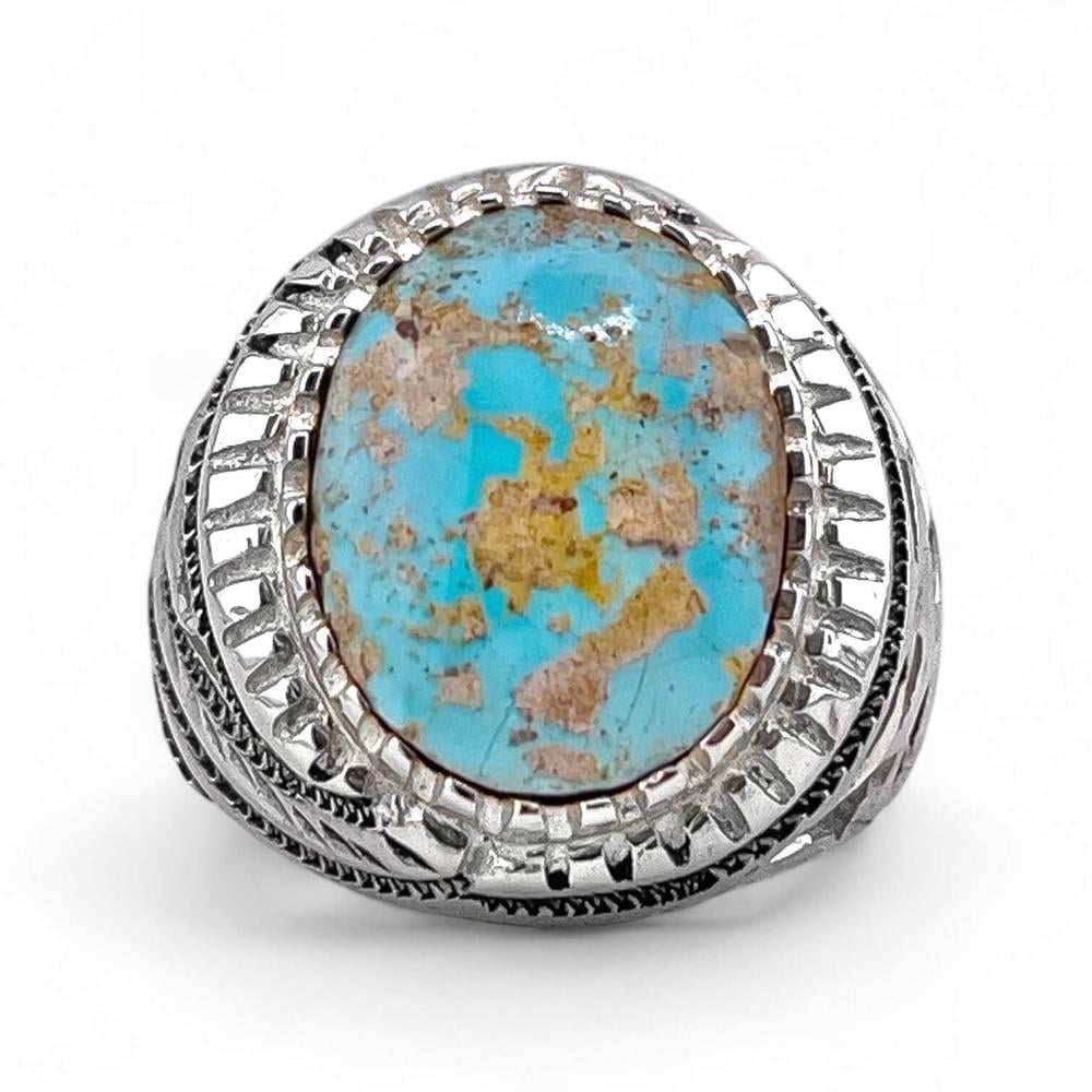 خاتم رجالي بحجر كريم فيروز نيشابوري – فضة عيار 950