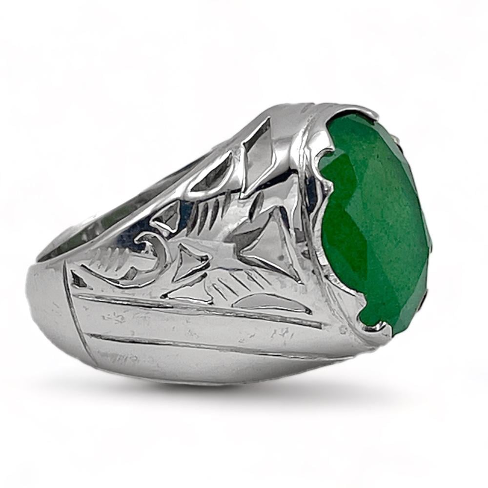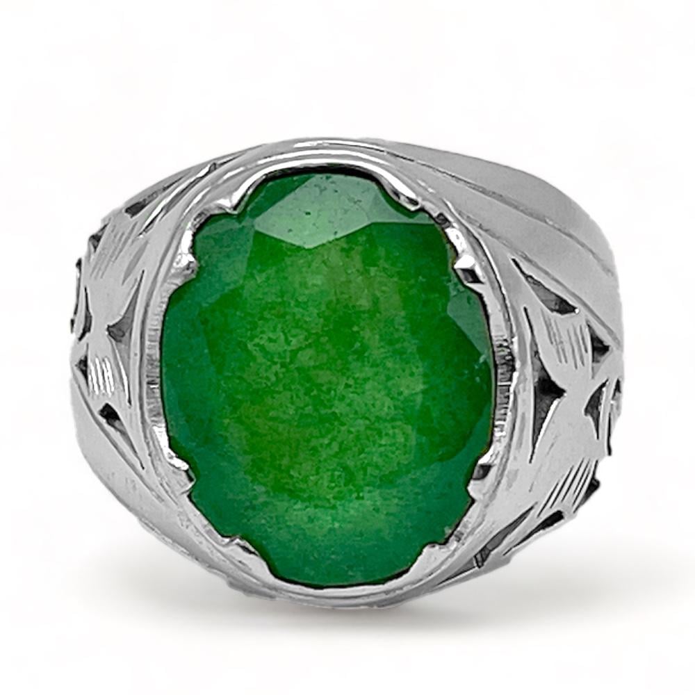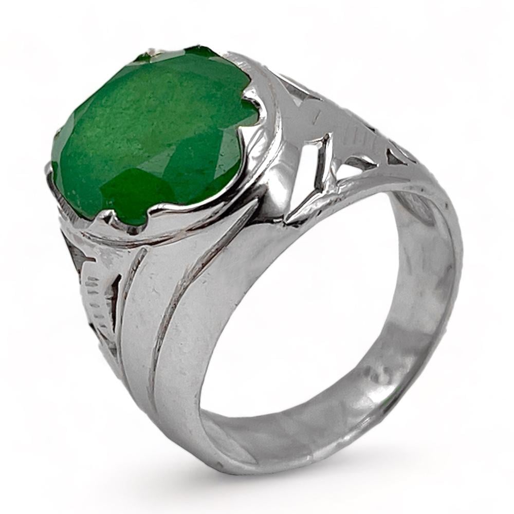 خاتم زمرد افريقي رجالي فضة عيار 925