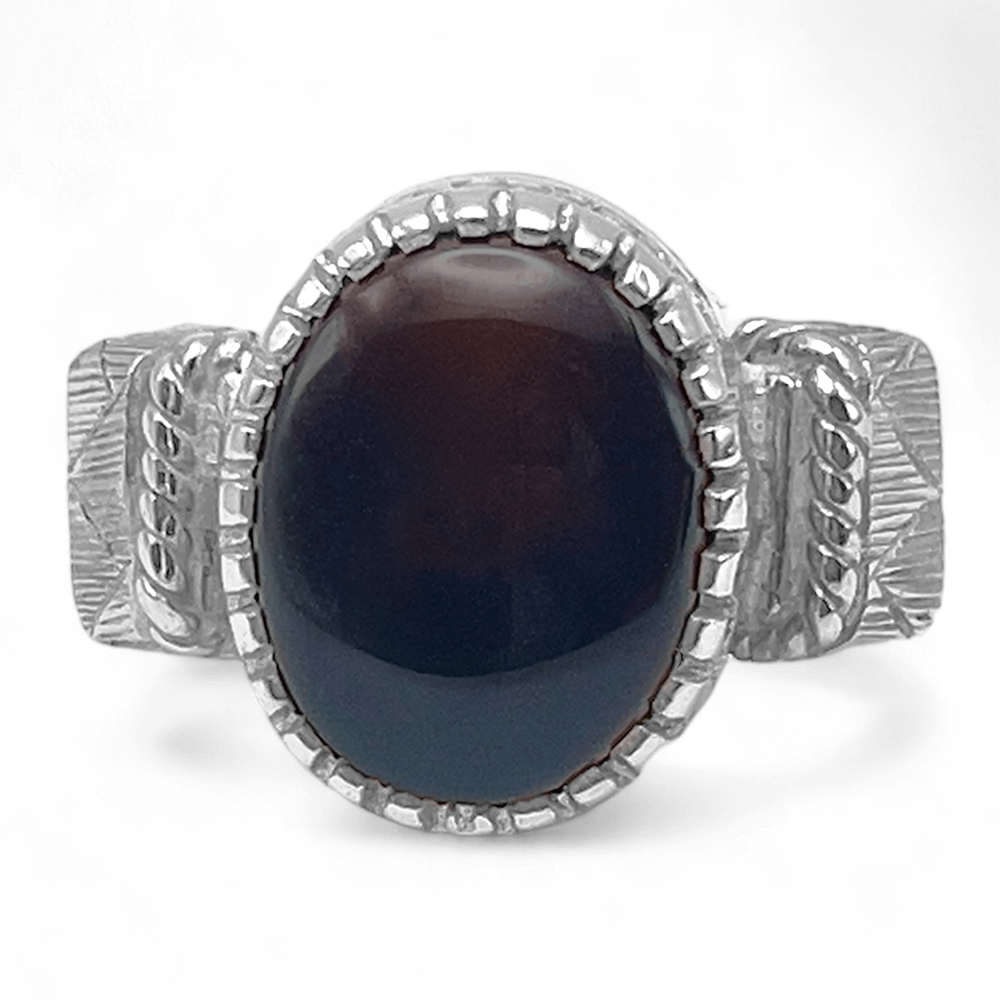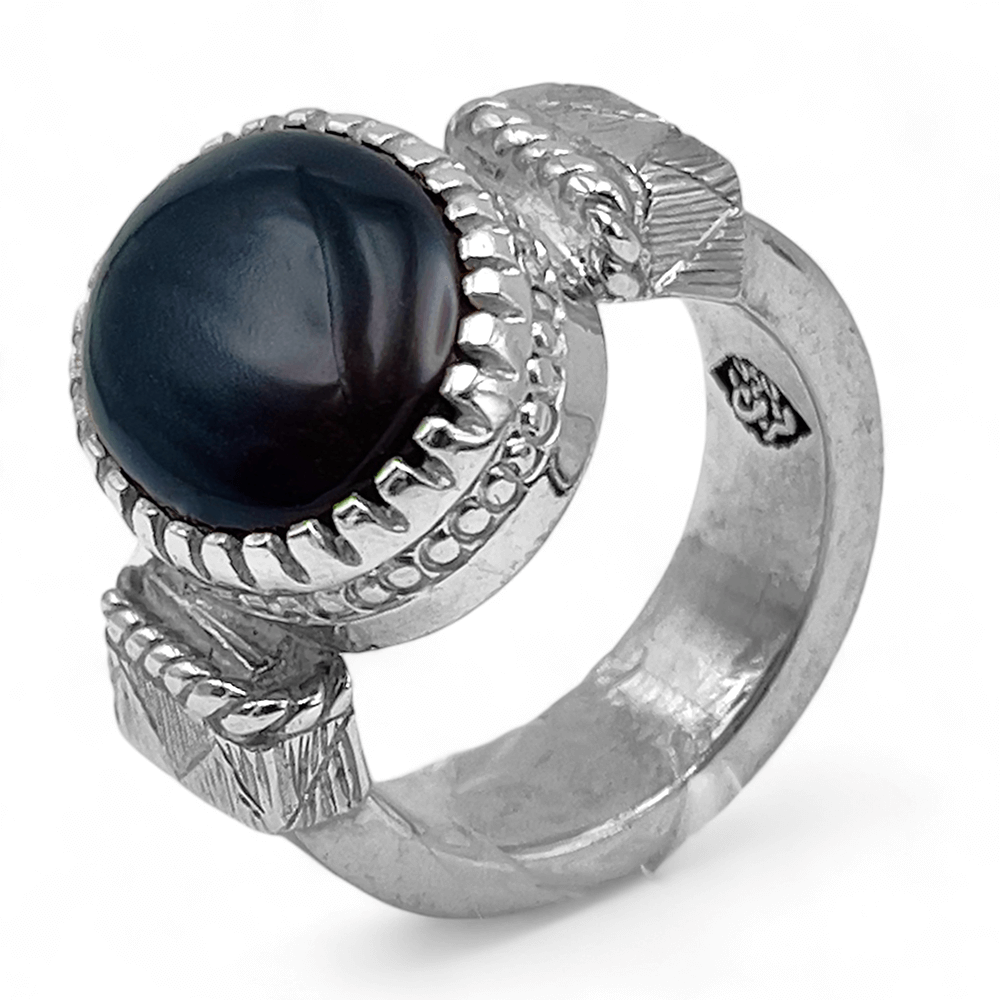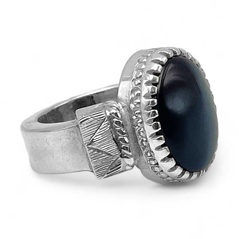 خاتم عقيق اسود ملكي فضة عيار 950