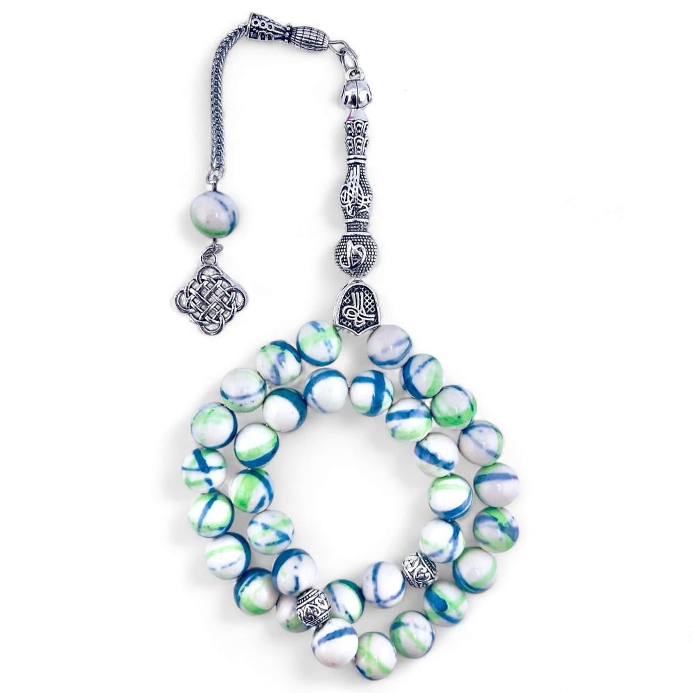 سبحة جاسبر (يشب) ملون طبيعي – 33 خرزة | تصميم كلاسيكي يعكس التوازن والجمال