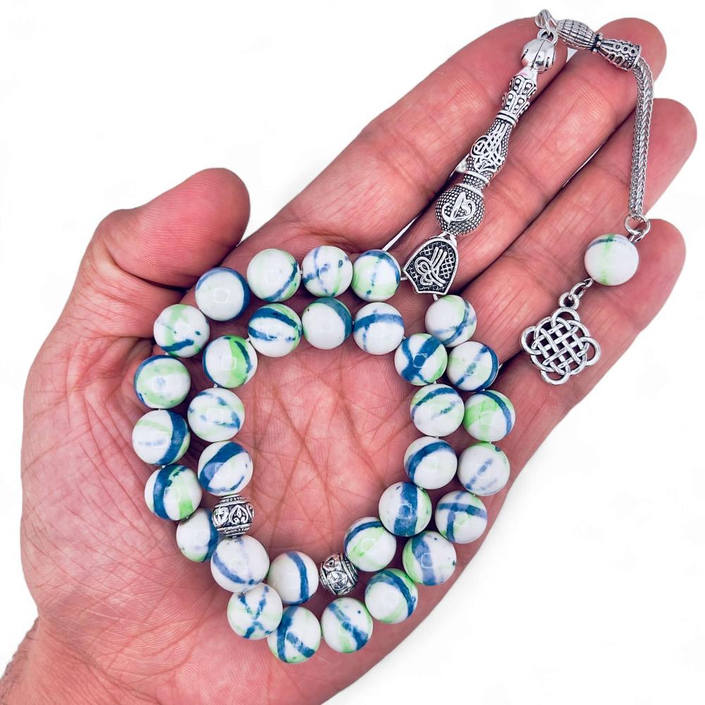 📌 ملاحظة: سبحة يشب طبيعية 100%، لذا قد تختلف الألوان والتموجات قليلاً، مما يضمن تفرد كل قطعة على حدة.
