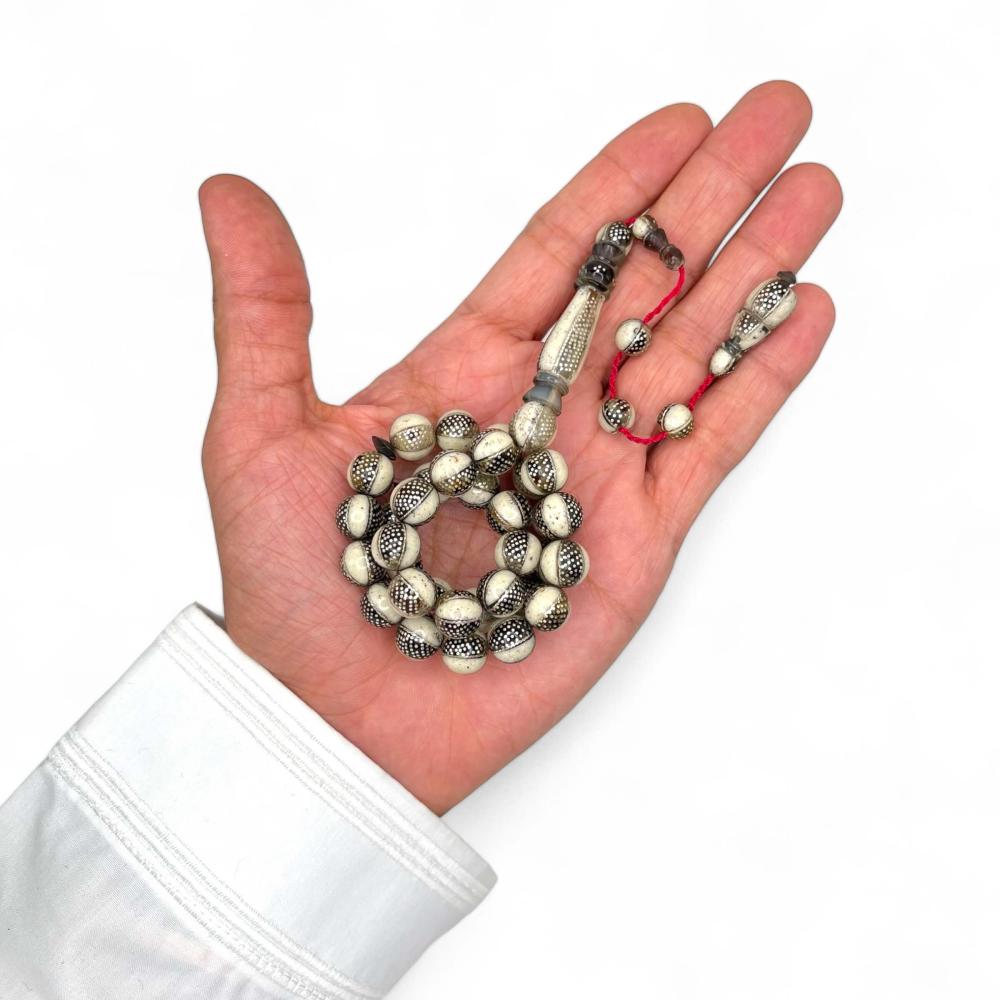 سبحة ظهر سلحفاة ترسا مرصعة بالفضة و العاج الطبيعي