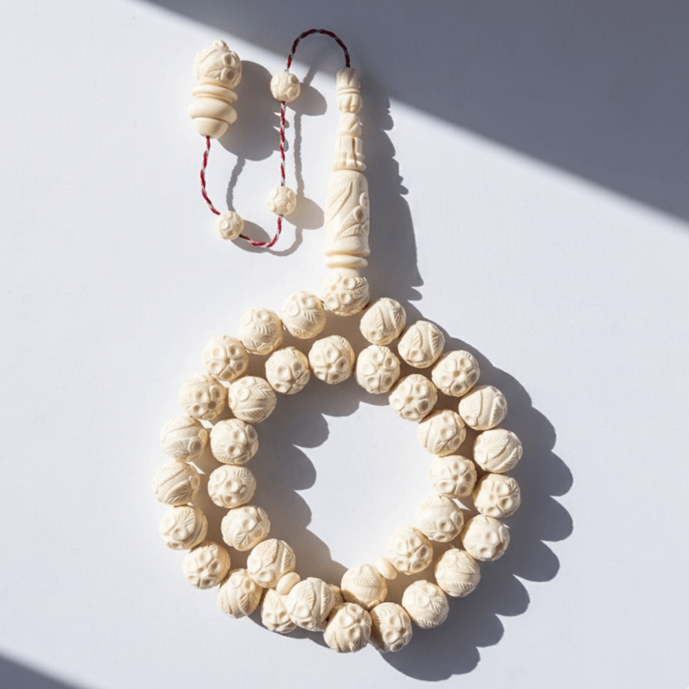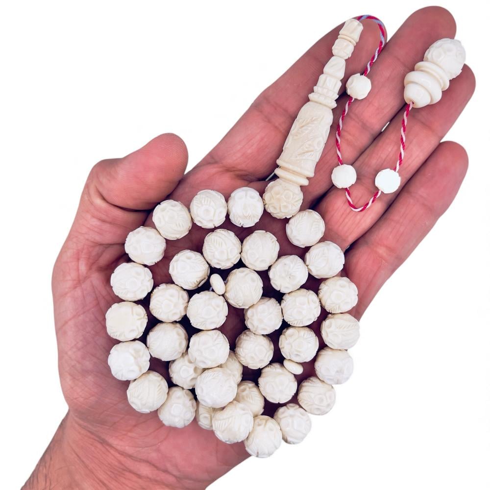 سبحة عاج ناب الفيل طبيعي منقوش نقش يدوي احترافي - 12 ملي 37 خرزة