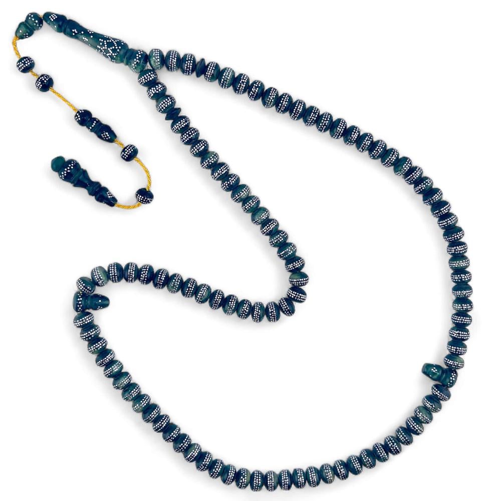 سبحة فاتوران الماني حرباء مطعمة بالفضة - 8 ملي 99 خرزة
