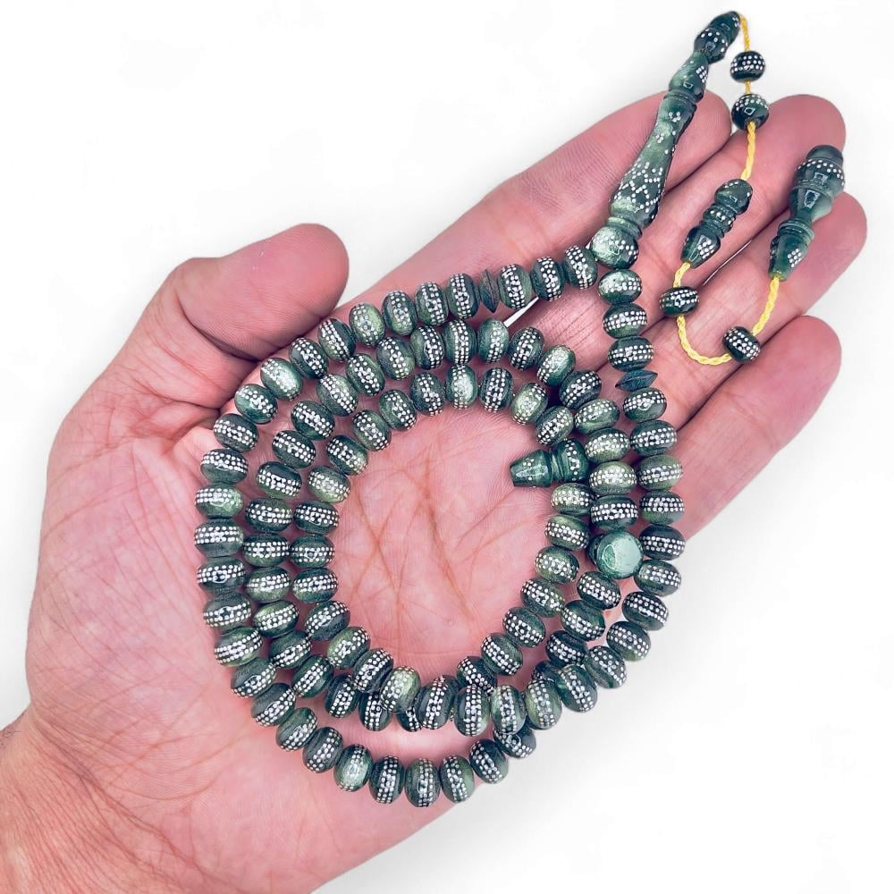 • تطعيمات فضية دقيقة تزيد من جمال وأناقة السبحة.