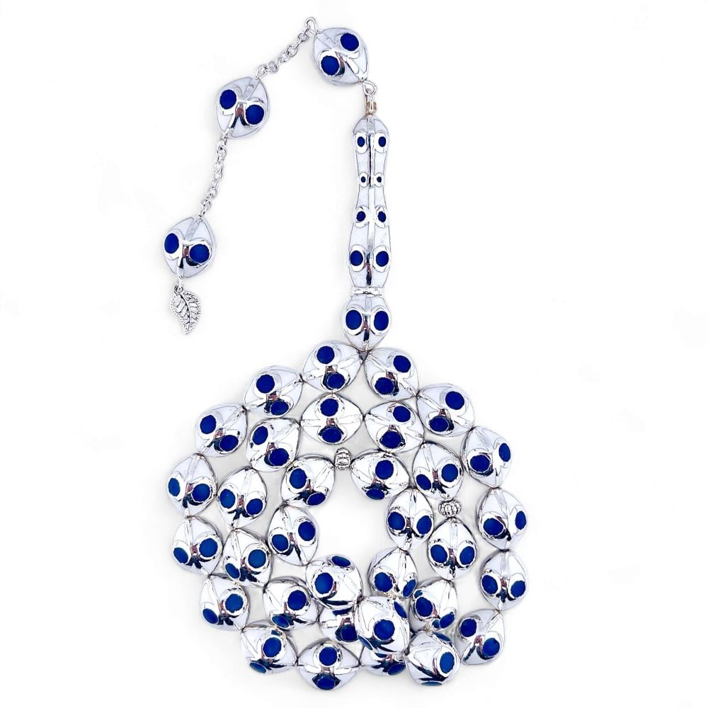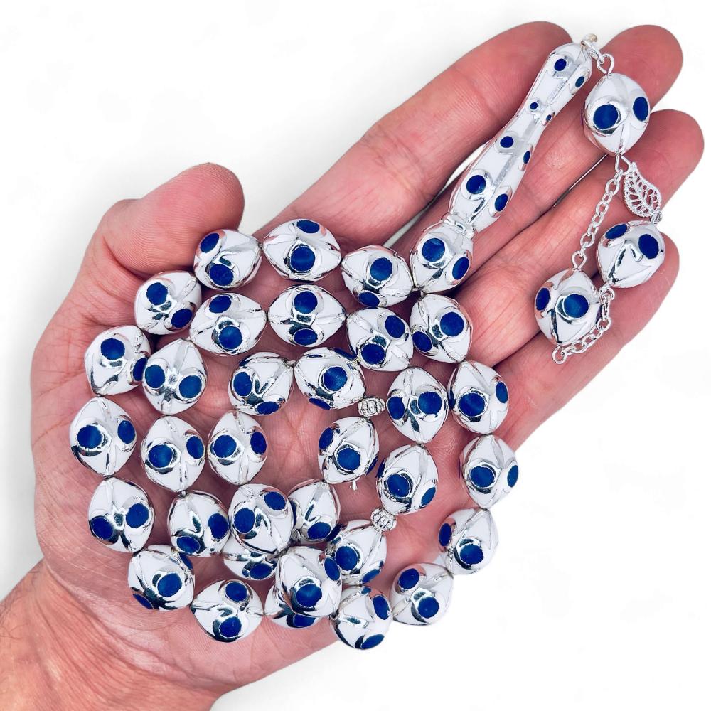سبحة فضة مطعمة بحجر اللازورد و بودرة العاج - 13 ملي