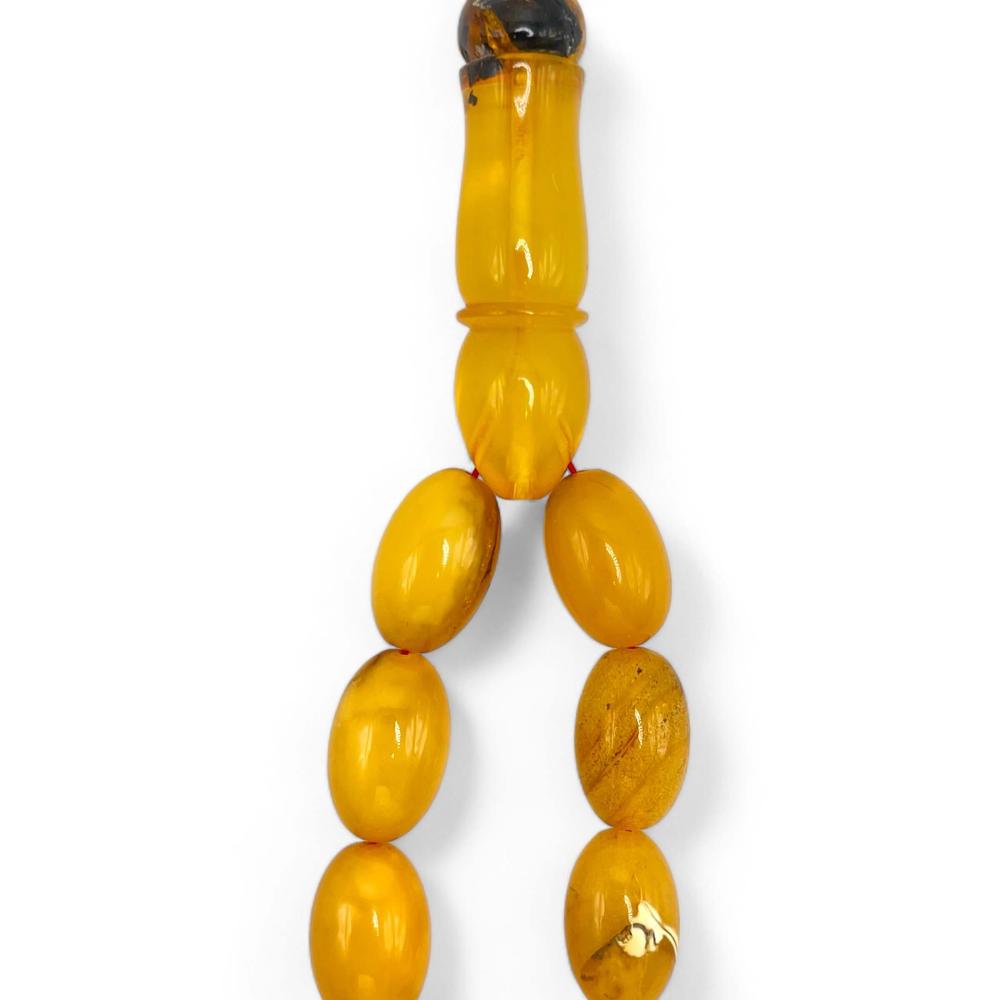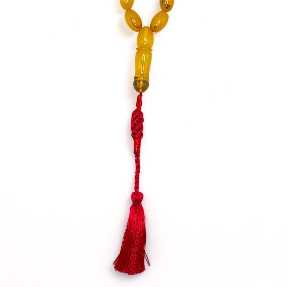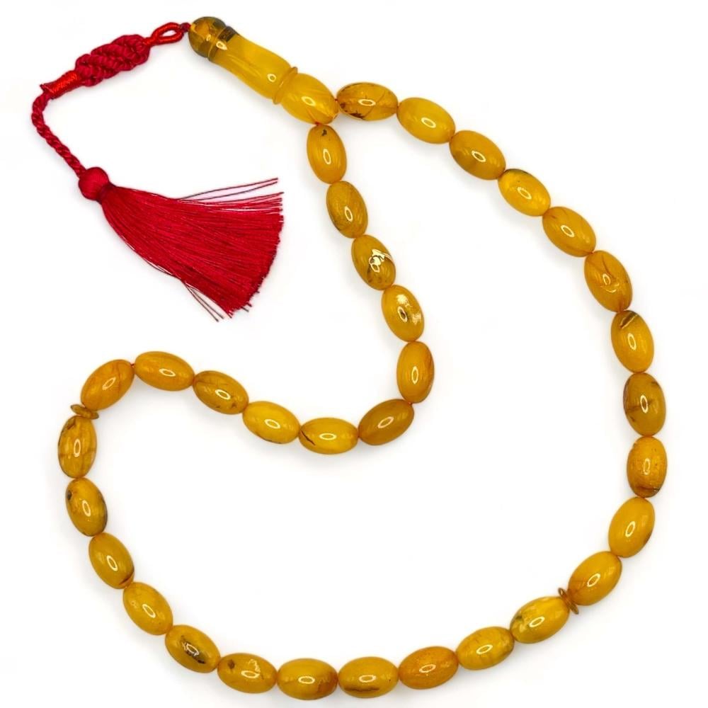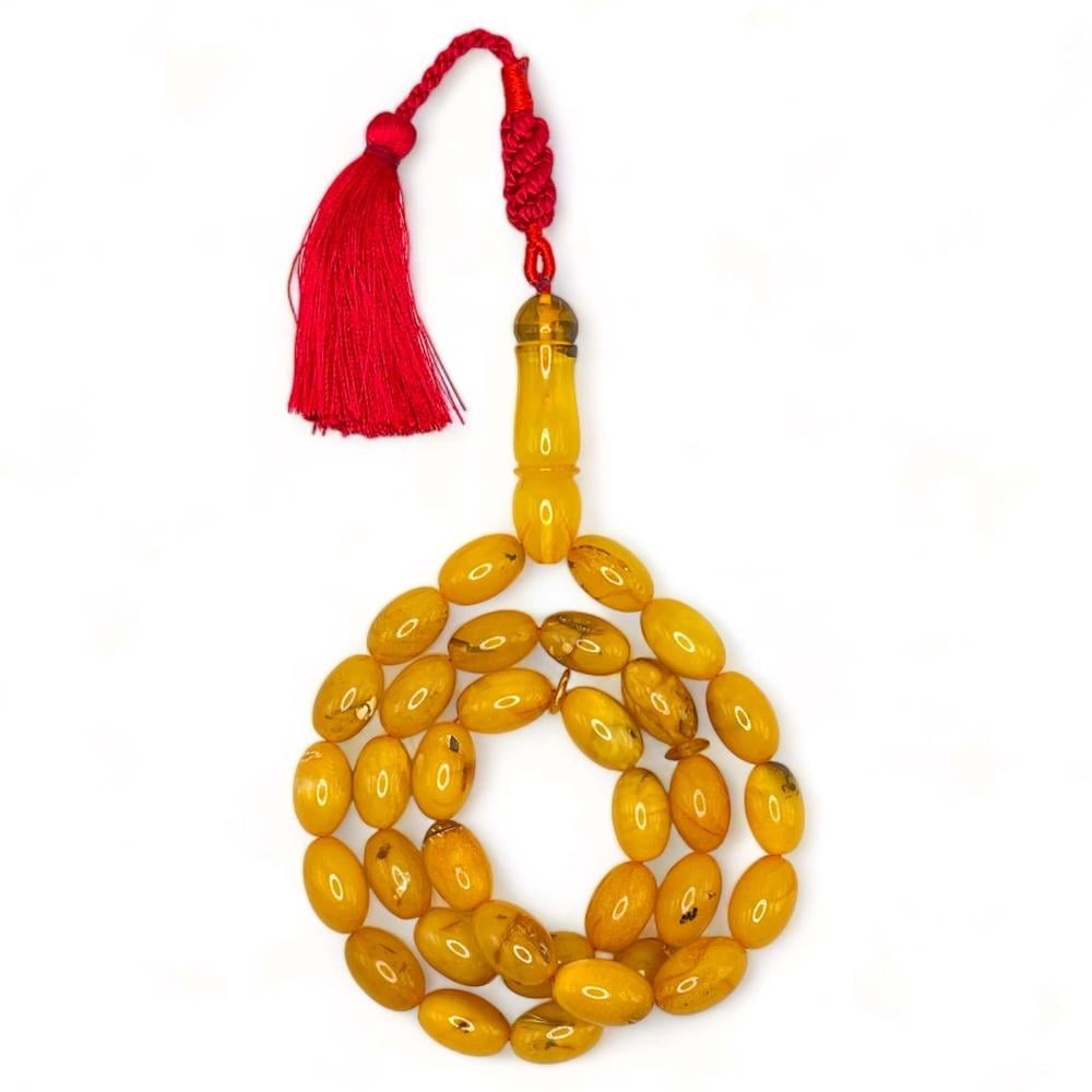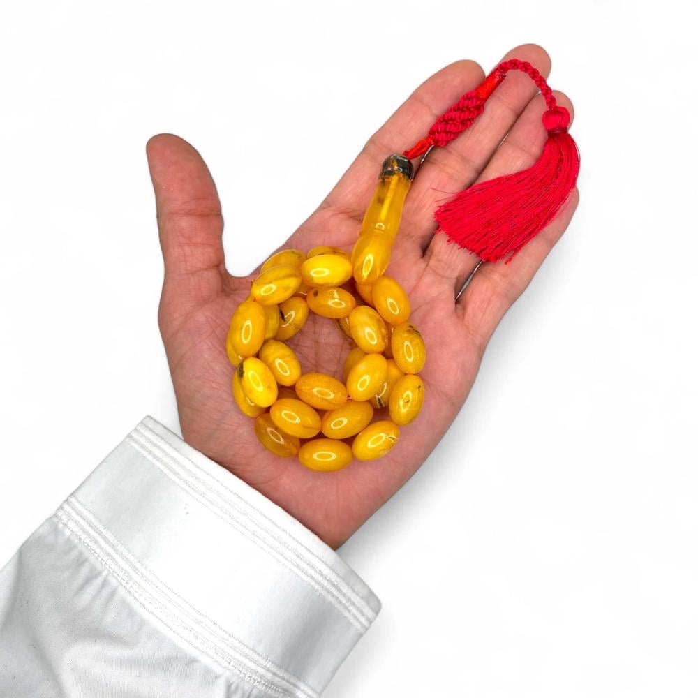 • متانة وقوة : الكهرمان مادة صلبة ومتينة، مما يضمن طول عمر السبحة.