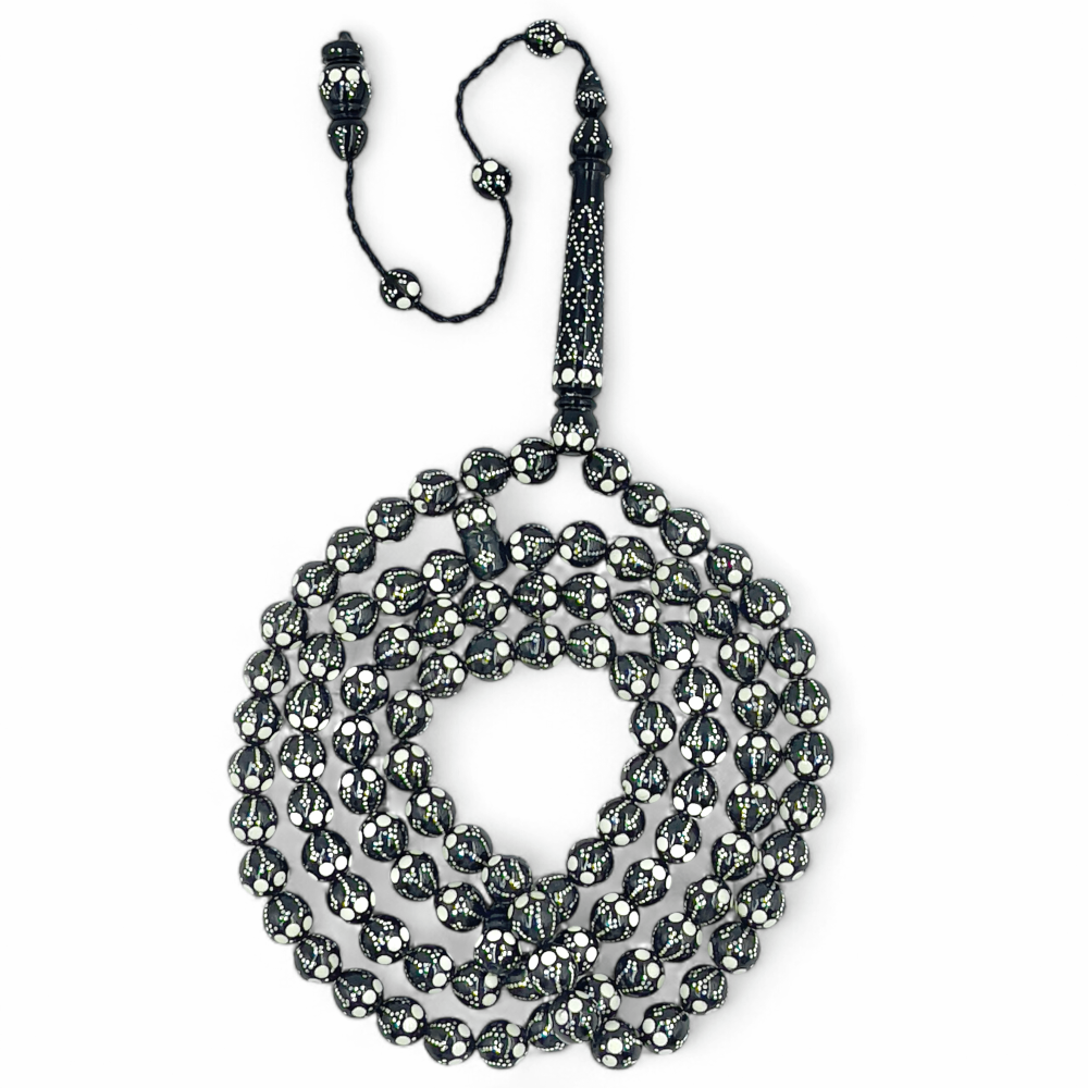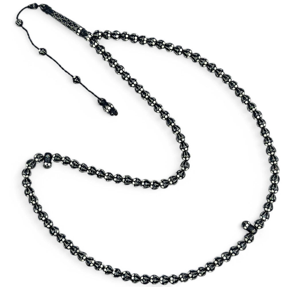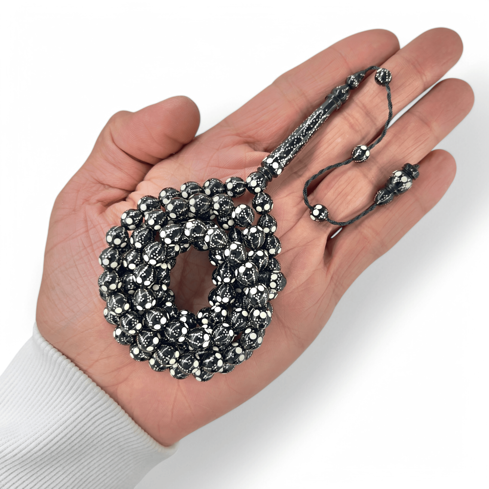 سبحة كوك طبيعي بتصميم فاخر من الفضة عيار 1000 و العاج - 7 ملي 99 خرزة