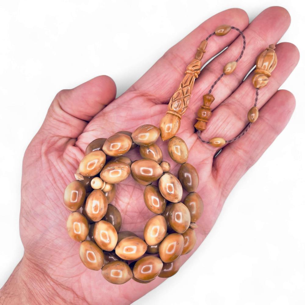 سبحة كوك طبيعي و الشاهد منقوش نقش يدوي - 39 خرزة 10 ملي