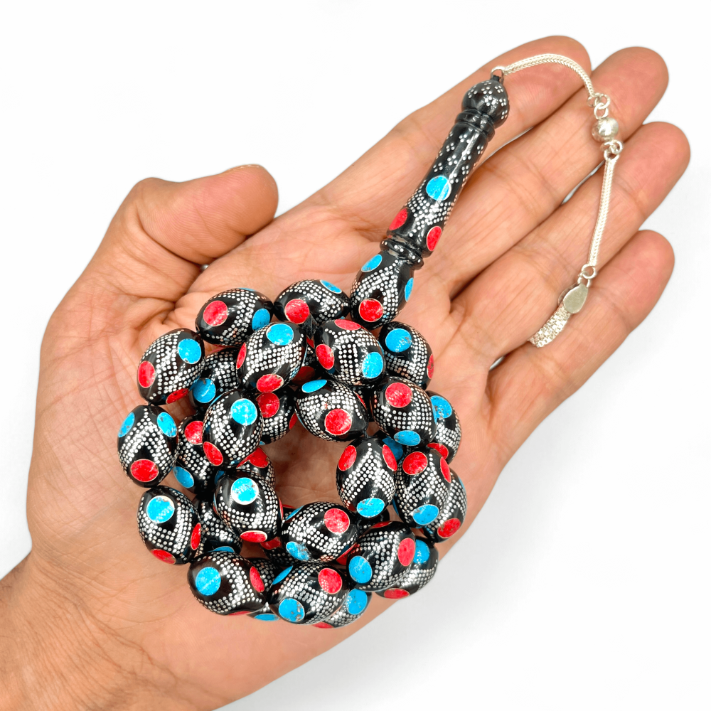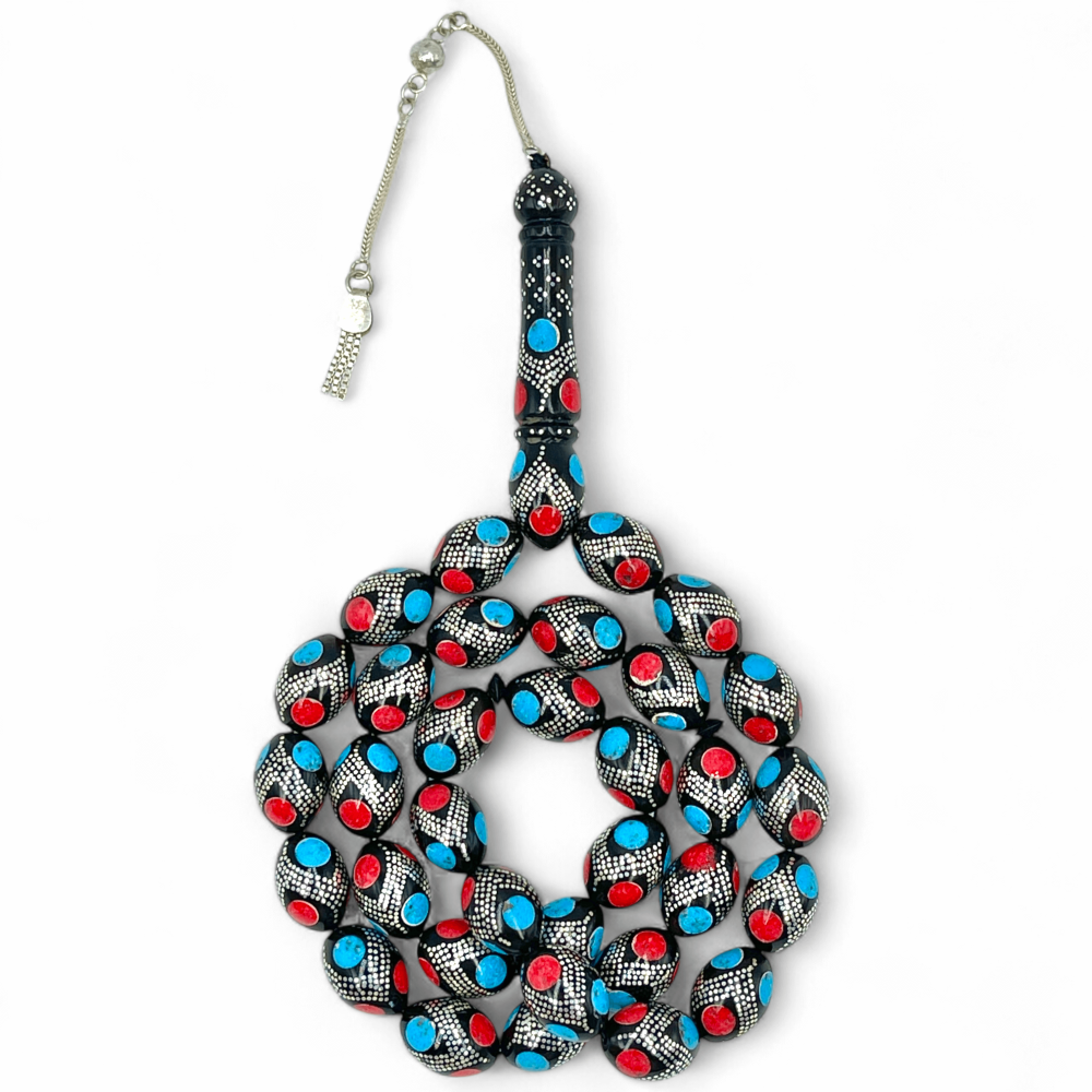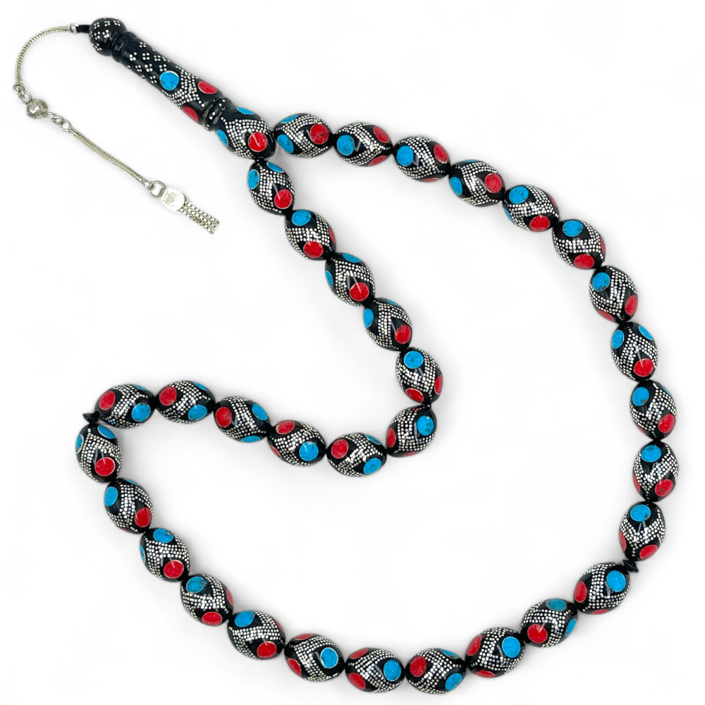 سبحة كوك مطعم فيروز و مرجان و فضة عيار 1000 - 11 ملي