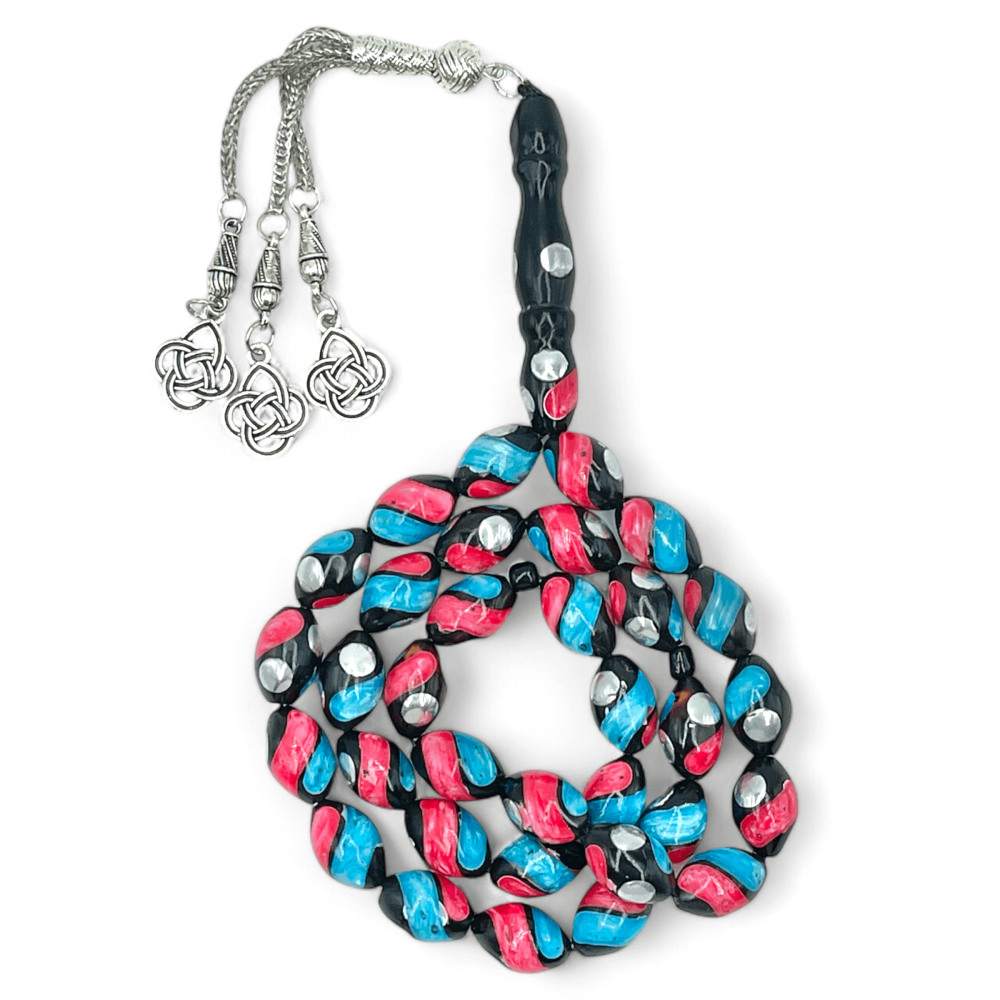 سبحة كوك مطعم معدن انتيمون مع لون الفيروز و المرجان