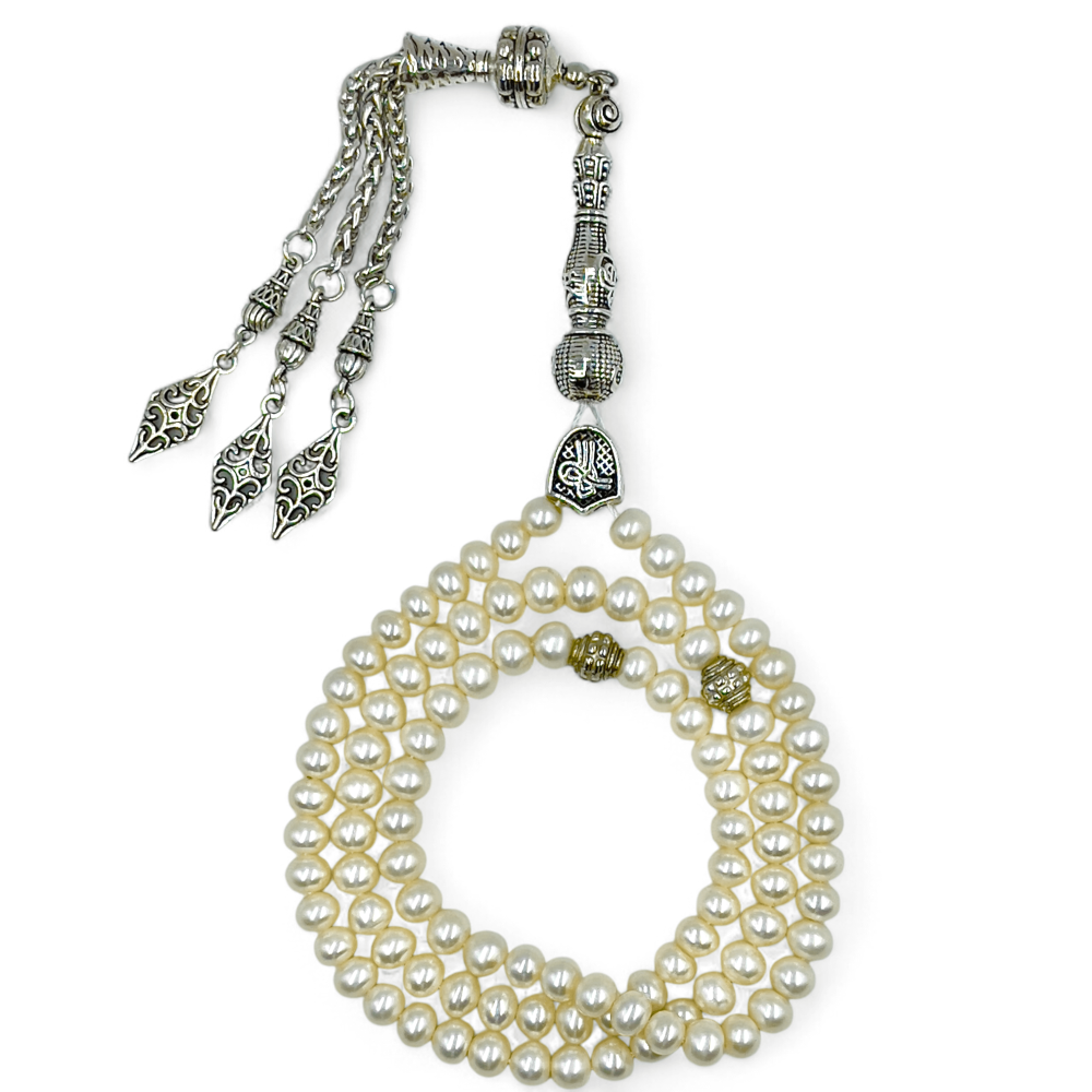 سبحة لؤلؤ طبيعي زراعي ياباني درجة اولى - ٩٩ خرزة