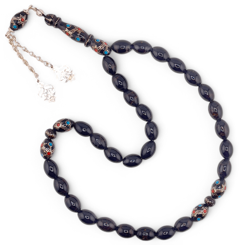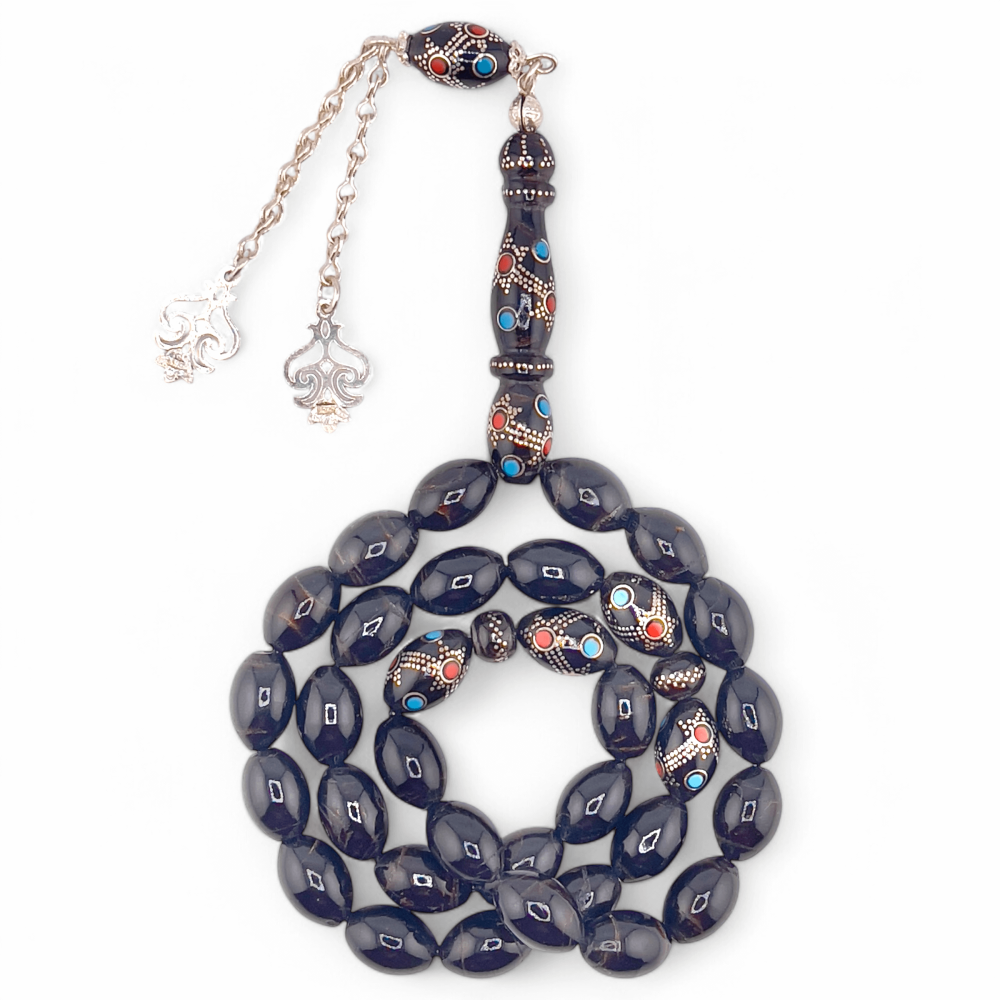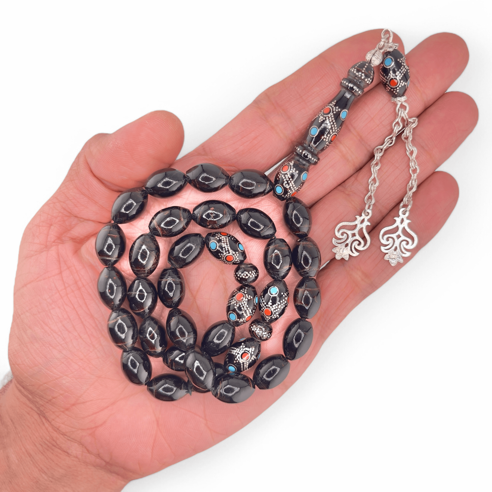 سبحة يسر فاخر الفواصل مطعمة بالفضة عيار 925 - 9 ملي