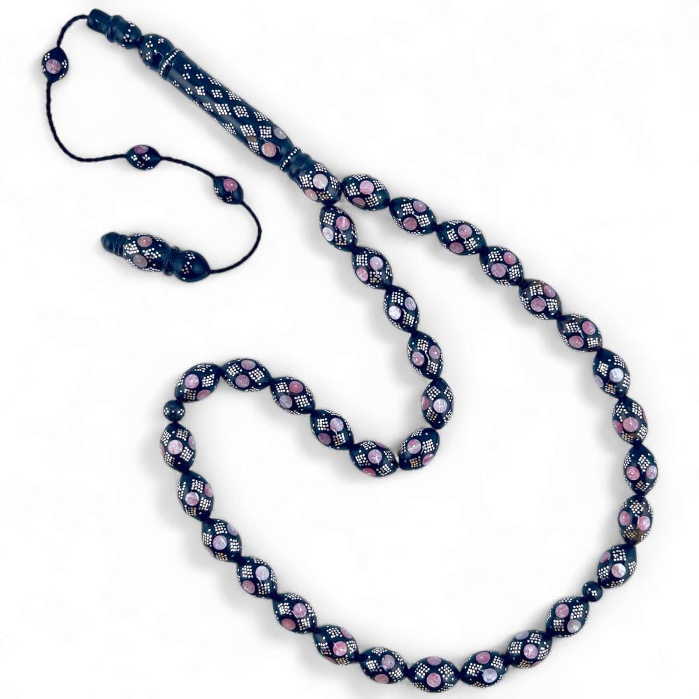سبحة يسر مطعمة بالفضة عيار 999 و لون الصدف الوردي - 33 خرزة 10 ملي