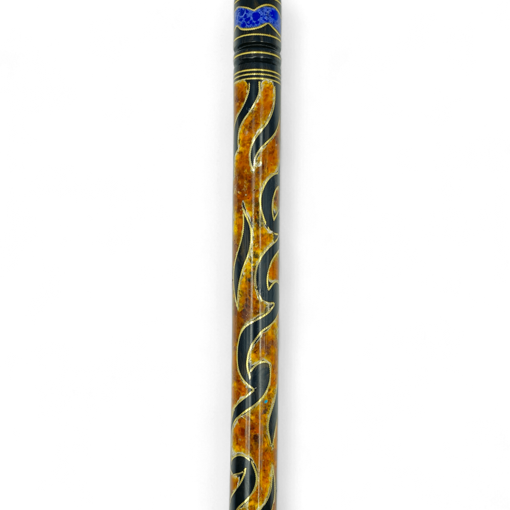 عصا عكاز من خشب الأبنوس مرصعة بالكهرمان واللازورد و النحاس
