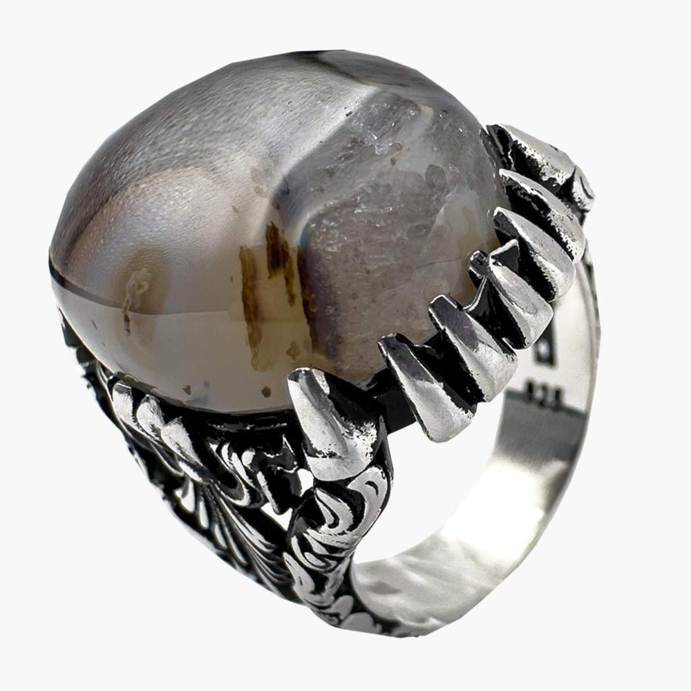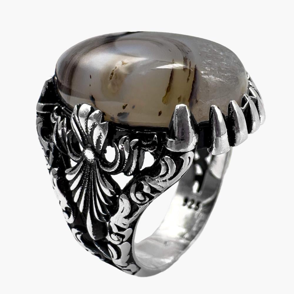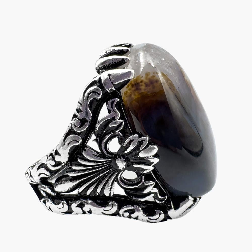 خاتم عقيق سليماني رجالي - مصاغ من الفضة عيار 925 - شغل يدوي