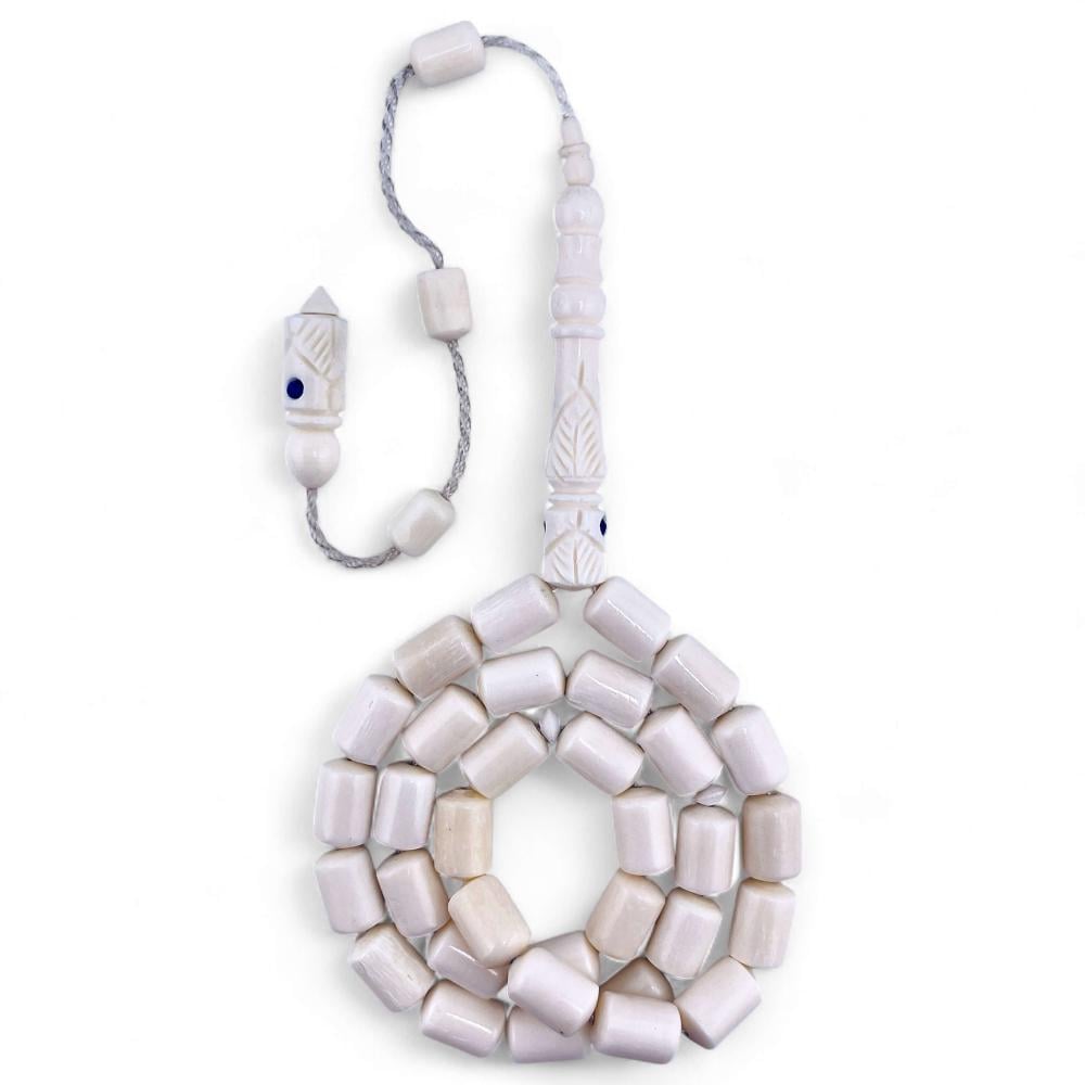 سبحة عظم جمل طبيعي منقوش مطعم زركون ازرق و احمر - 8 ملي