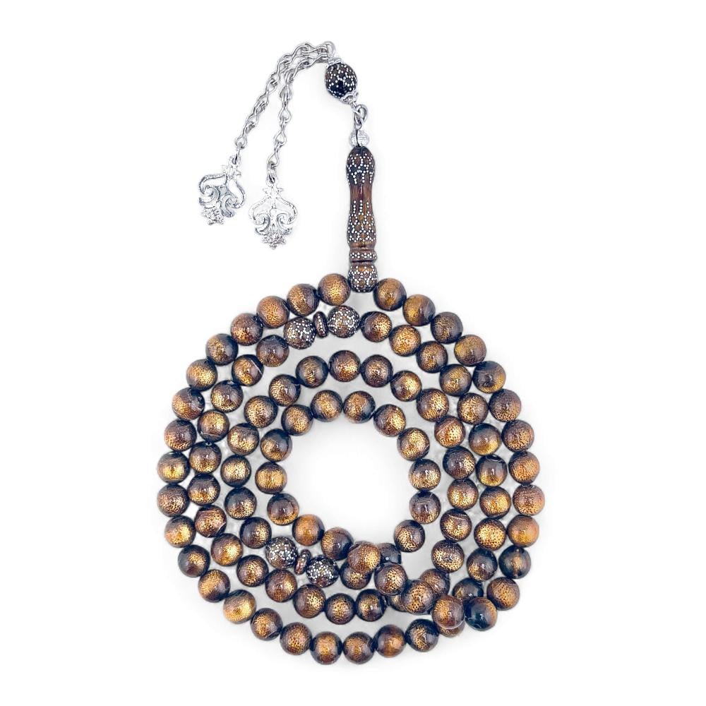 سبحة اليسر الذهبية النادرة مطعمة بالفضة 8 ملي - قطعة فنية فريدة تبرز أناقتك - 99 خرزة