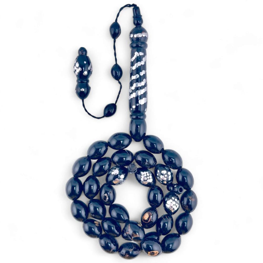 سبحة يسر قديم الفواصل و الشاهد مطعمة بالفضة بالطريقة التقليدية - 33 خرزة 10 ملي