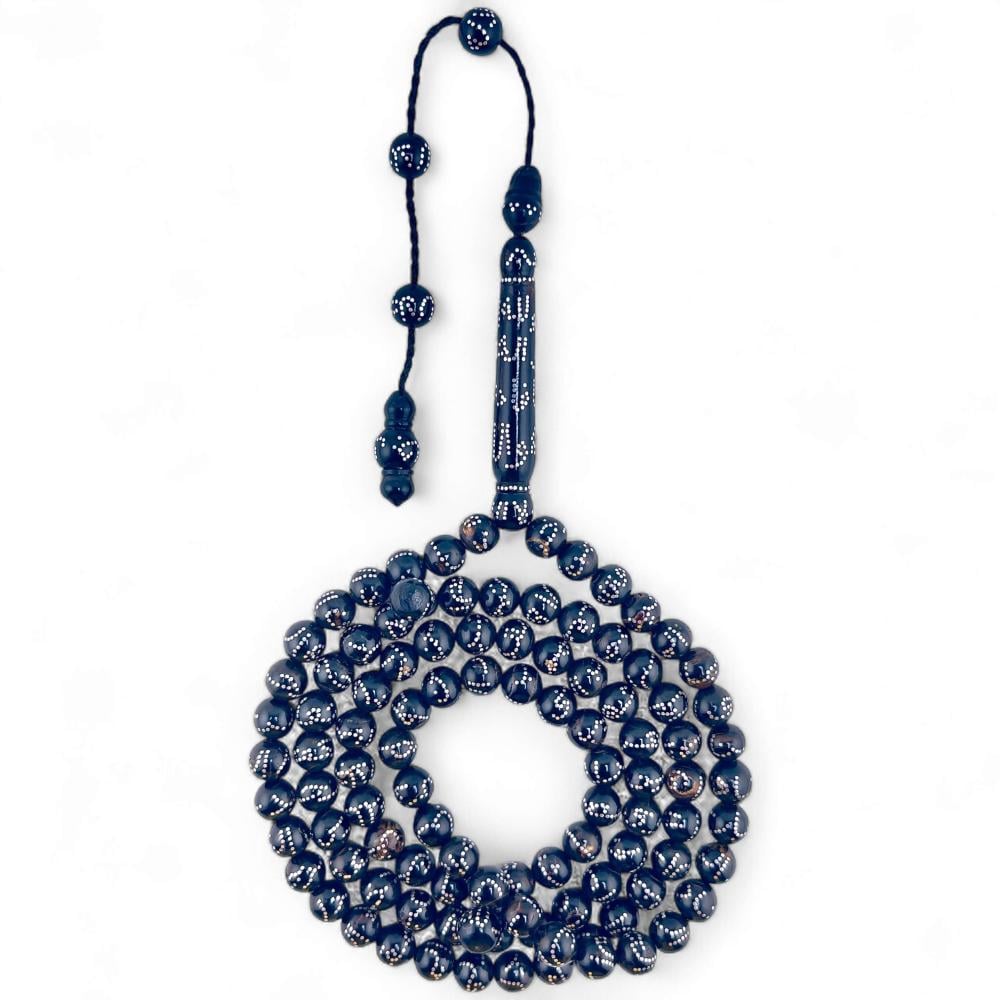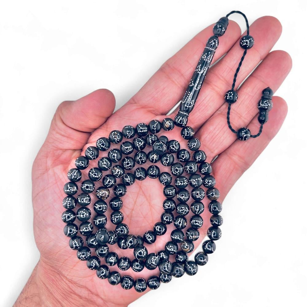 سبحة يسر مطعمة بالفضة أسماء الله الحسنى - 99 خرزة 7 ملي
